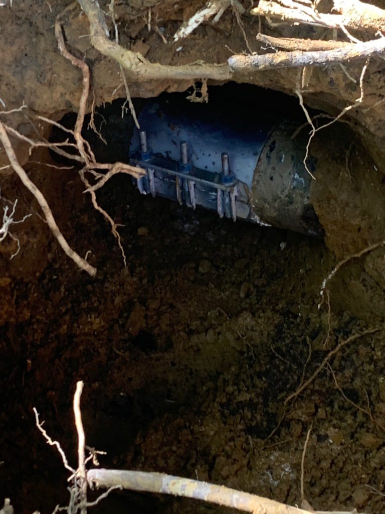 Alpha Plumbing repaired a leaking water main for a commercial client in Annapolis. We excavated to expose the leaking pipe and then repaired the break with an 8″ stainless steel wrap. Upon completion of the job, Alpha Plumbing backfilled the excavation and rough graded the soil.