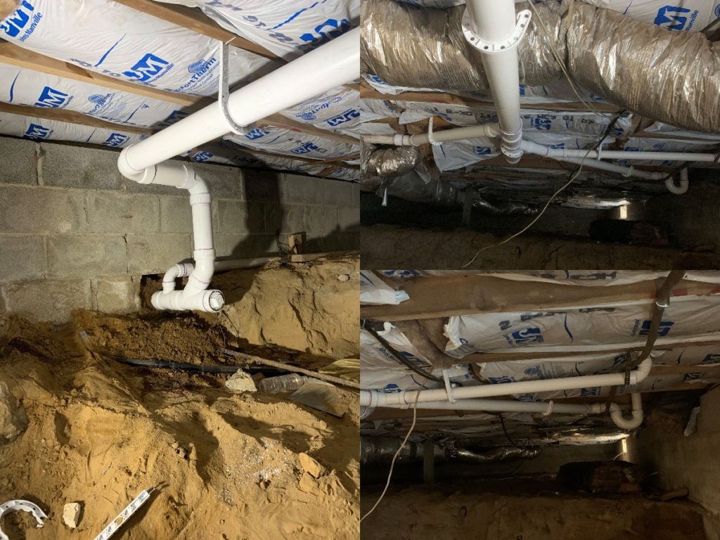 Alpha Plumbing repaired a drain in a crawlspace for a homeowner in Pasadena. The original drain was back-pitched; we installed new PVC piping with proper fall. Alpha Plumbing also replaced a shower drain assembly and patched the hole where the sewer exits house.
