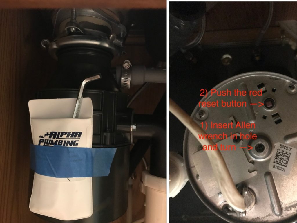 Alpha Plumbing installs garbage disposals frequently — this one was in Annapolis. Looking for a way to unjam your disposal? Turn the disposal off and then try manually turning the blades by inserting an Allen wrench into the bottom of the disposal. Give the Allen wrench a few turns and then hit the reset button. Once the disposal is working normally again, send down some ice chips and a bit of lemon juice to clean the blades and leave the sink smelling fresh.