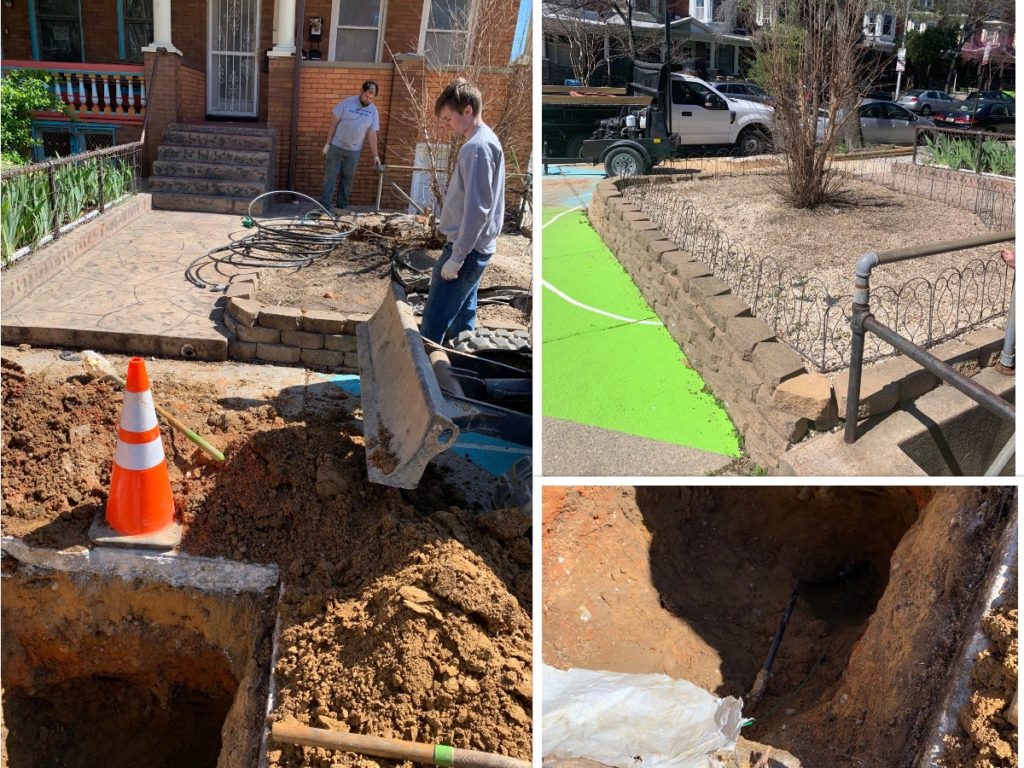 Alpha Plumbing replaced a water service for a homeowner in Baltimore yesterday. Rather than trenching through the entire yard, we used missile shots to minimize disturbance to the landscaping. Check out how we were able to avoid digging up the homeowner’s walkway and garden in our pictures below.
